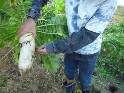 明峰エコファームでは様々な野菜が収穫の時期を迎えています。昨日は大根を収穫しました。